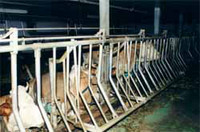 Kühe können zum Melken eingesperrt werden